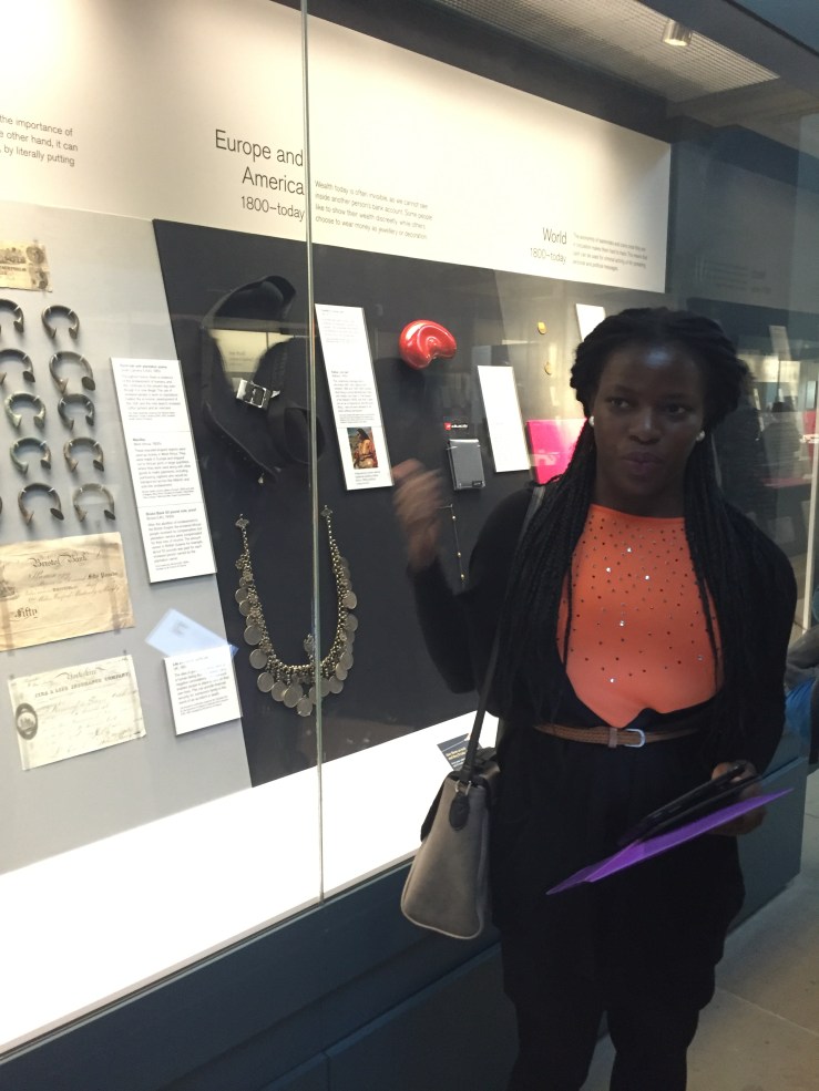 Images 1a and 1b: Judith Onwubiko presents (above), and recreates in clay (below), a collection of manillas at the British Museum. Image © Amanda Perry-Kessaris.