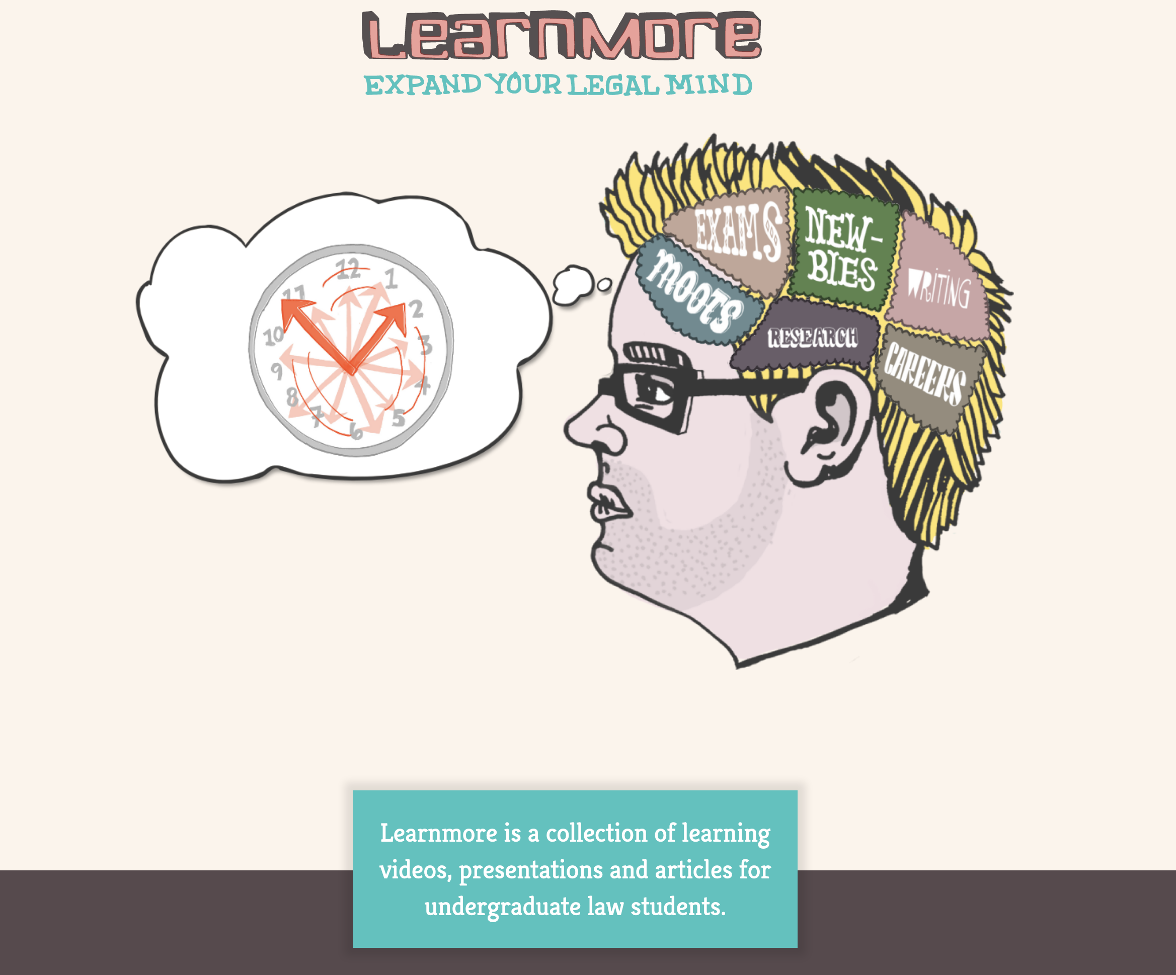 Lawbore is an award-winning community site that is designed to offer law students an engaging pathway to free online legal resources. It speaks accessibly, leavening text with images chosen carefully to intrigue, to enhance communication or to make users smile. It is the product of nearly two decades of experimentation, having been continuously redesigned in response to the changing needs and experiences of users (students, colleagues, institutions), including the addition of new sub-sites every few years (see Future Lawyer and Learnmore).